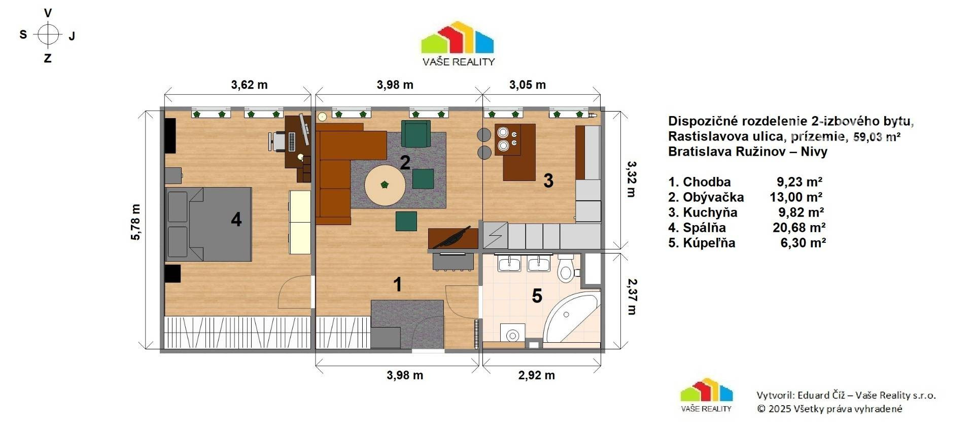 REZERVOVANÉ - krásny a štýlový 2-izbový byt, 59 m²,BA-Rastislavova ul.