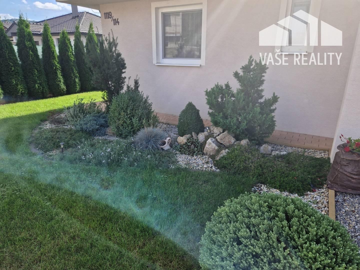 VAŠE REALITY: Ponúkame Vám na predaj bungalov v obci Košeca v novovybudovanej lokalite rodinných domov. Bungalov s úžitkovou plochou 100 m2 sa nachádza na pozemku s výmerou 800 m2. Bungalov pozostáva z veľkej obývačky spojenej s kuchyňou v ktorej je špajza a s jedálňou, 3 spální, hosťovského WC a kúpeľne spojenej s WC. Z obývačky a 2 spální je vstup do záhrady a na terasu. V dome je zavedený plyn, elektrina, obecná voda, obecná kanalizácia. Vykurovanie je podlahové, plynový kotol zn. BAXI. Pred domom sú dve parkovacie miesta. Za domom sa nachádza okrasná záhrada, vyhrievaný bazén 6x3 m, záhradný domček, studňa , trávniková závlaha, predpríprava na garáž či prístrešok. V obci sa nachádza škola, škôlka, potraviny, detské ihrisko, pošta..... atd. Cena 350 000 Eur.