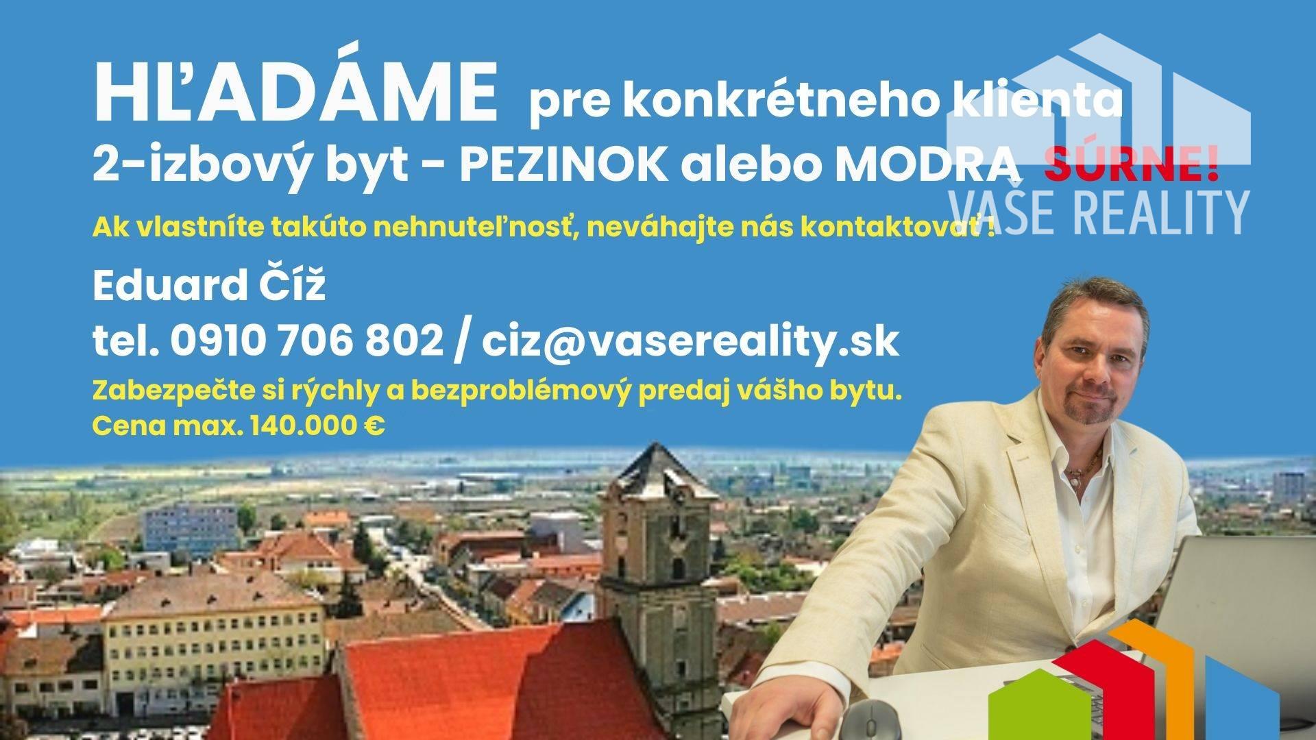 Ak máte na predaj 2-izbový byt v lokalite Modra alebo Pezinok, ktorý spĺňa vyššie uvedené požiadavky, neváhajte nás kontaktovať. Radi sa s vami dohodneme na osobnej schôdzke a preberieme ďalšie detaily.