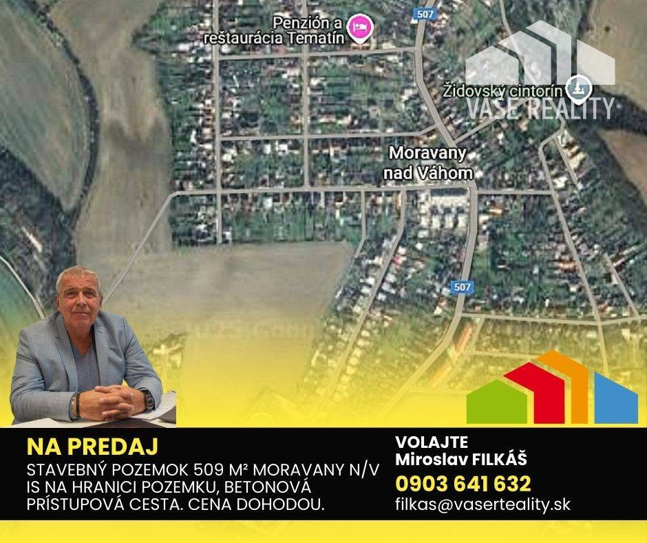 190334 - Len necelých 6km od kúpeľného mesta Piešťany, v obci Moravany nad Váhom, ponúkame na predaj slnečný, rovinatý stavebný pozemok na výstavbu rodinného domu o ploche 509m2. IS sú dobudované a nachádzajú sa pri pozemku. Pozemok sa nachádza v novovybudovanej časti obci už so začatou výstavbou rodinných domov a vedie k nemu betónová cesta.