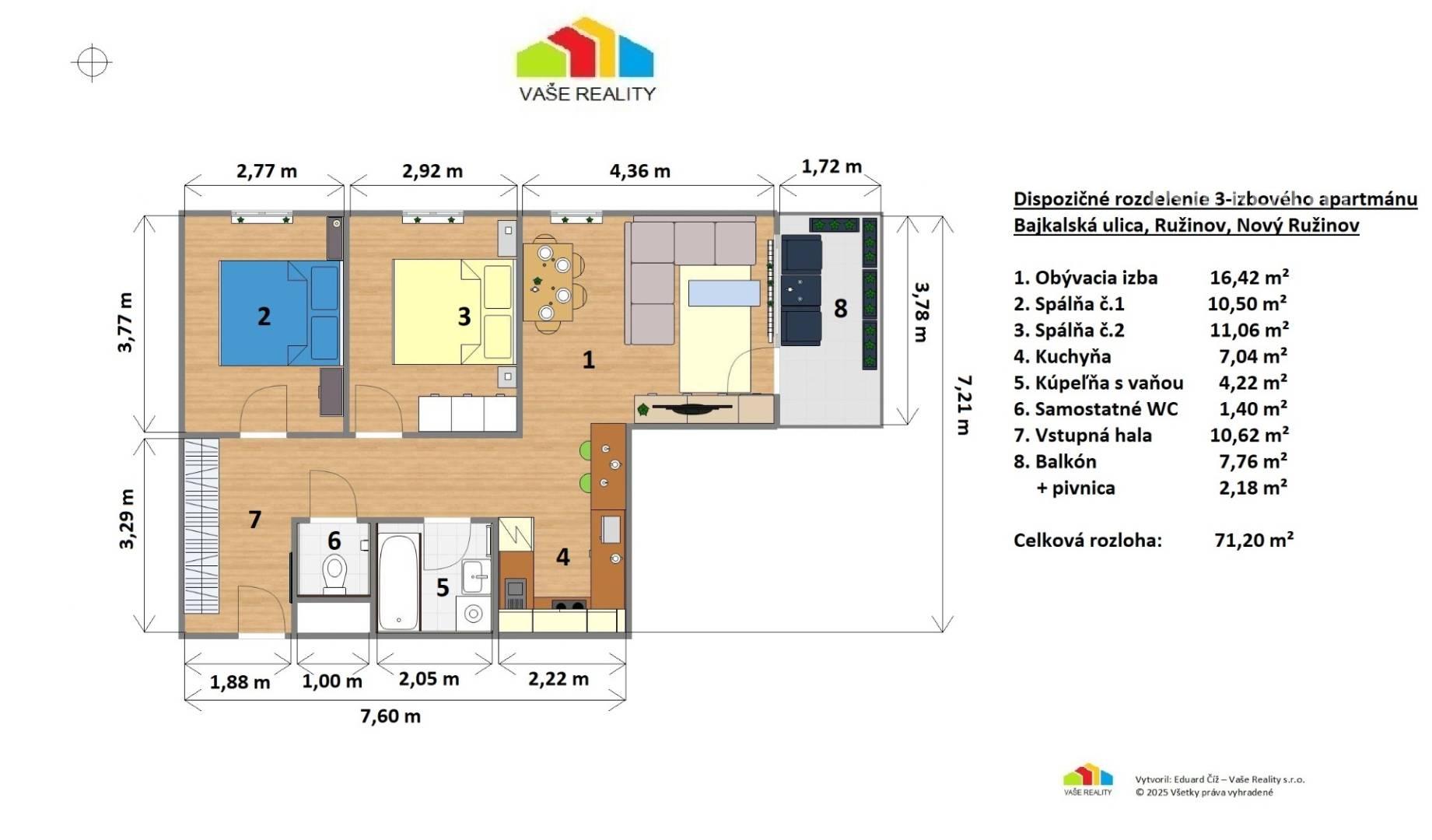 Krásny 3-izb. s balkónom, 71m².na Bajkalskej v Novom Ružinov