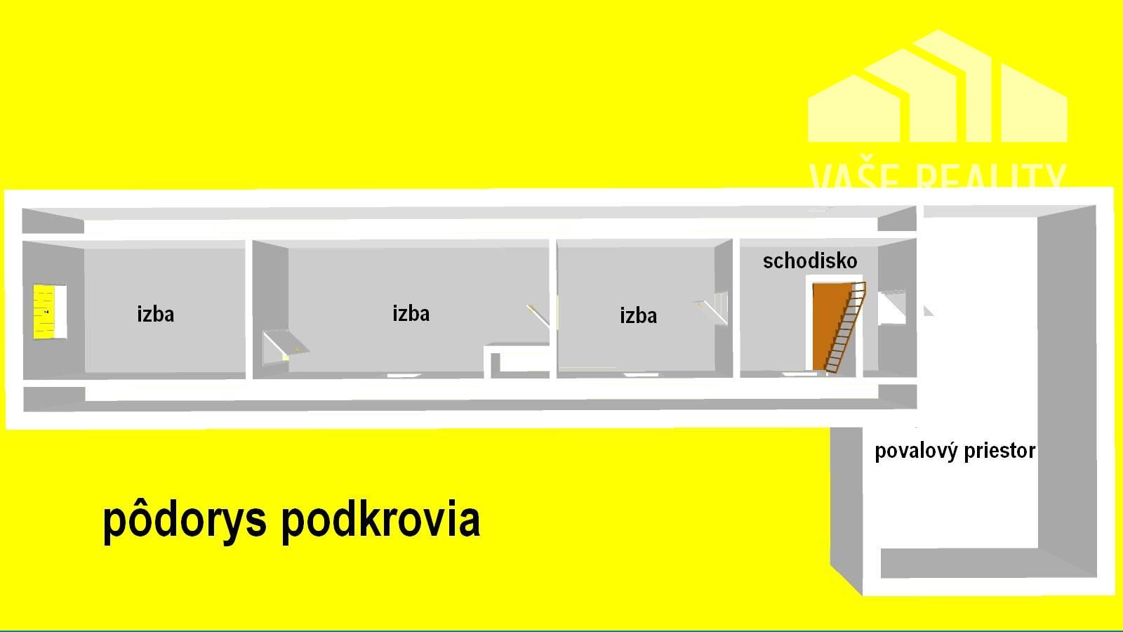Prízemie: Vstupná chodba, obývacia izba, kuchyňa, špajza, 2 spálne, jedáleň, pracovňa, kúpeľňa, WC