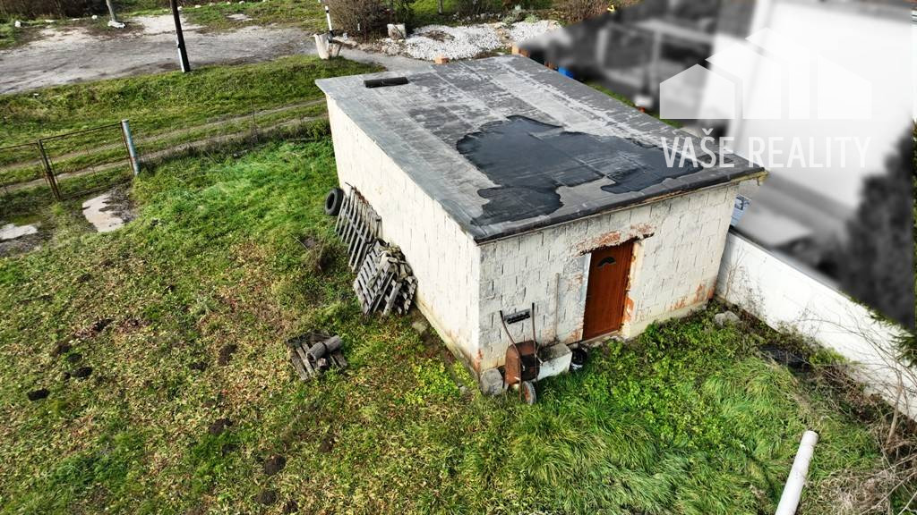 Na pozemku sa nachádza veľká murovaná garáž, ktorá môže slúžiť pri výstavbe napr. ako skladový priestor pre materiály alebo náradie, záhrada je celá oplotená záhradným pletivom.