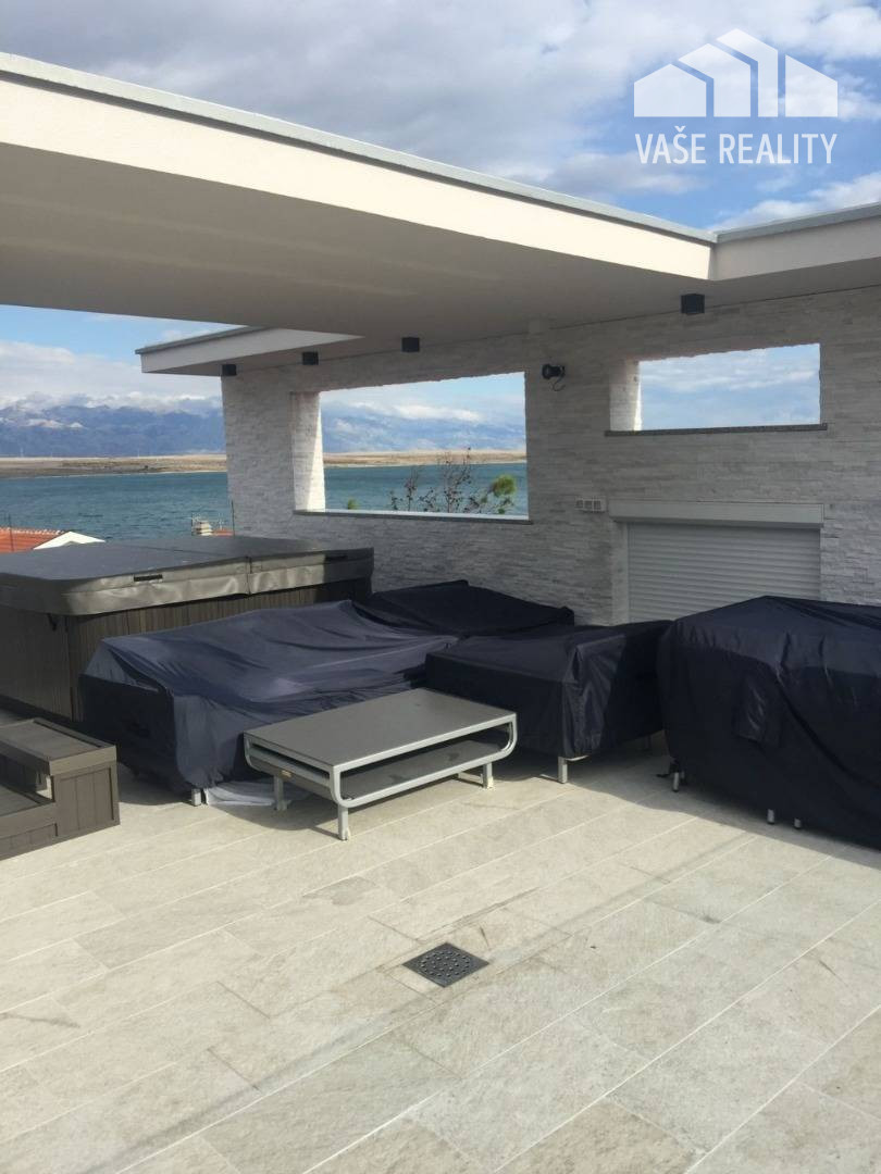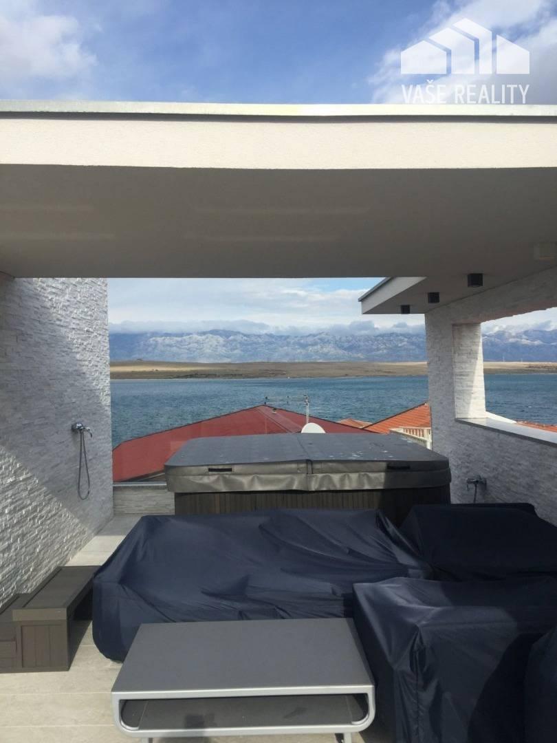 • Na vrchu nehnuteľnosti sa nachádza strešná terasa s jakuzou pre 6 osôb, malá kuchyňa, chladnička, ležadlá, TV. Z terasy je krásny výhľad na more a mesto Vir. Ideálne rovnako ako pre večernú párty, alebo na pokojné romantické rodinné večery pod hviezdami.