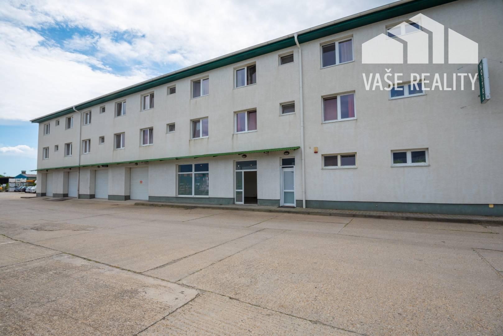 Realitná kancelária Vaše Reality Vám ponúka na prenájom priestor s celkovou rozlohou 104 m² situovaný na prízemí multifunkčnej budovy s výborným prístupom a bezproblémovým parkovaním v areáli, ktorého súčasťou je administratívna budova, ubytovňa, sklady a vonkajšie skladovacie a parkovacie plochy.
