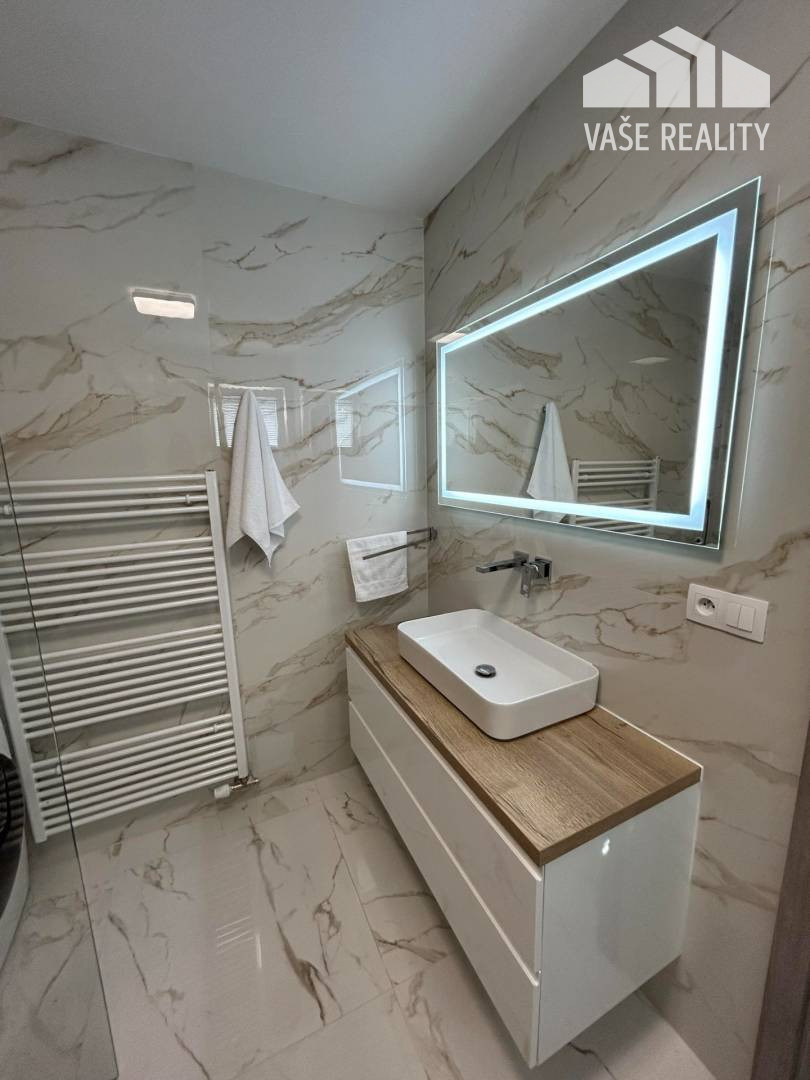 Mezonetový byt sa nachádza na 7 a 8 poschodí.. Kde 8 poschodie je najvyššie a zaručuje vám nie len nádherný výhľad, ale predovšetkým súkromie, nakoľko terasa susedí len s jedným vedľajším bytom, od ktorého je oddelená murovanou priečkou. Dispozičné riešenie bytu : na prvom podlaží vstupná chodba, samostatné WC s umývadlom, technická miestnosť využívaná ako šatňa, druhú menšia komora a priestranná kuchyňa prepojená s obývacou izbou. Zo vstupnej chodby vedie schodisko na druhé podlažie, kde sa nachádzajú dve samostatné izby, pričom východ na terasu vedie nie len z chodby, ale aj priamo zo spálne. Druhá spálňa môže slúžiť ako detská izba, alebo ako hosťovská izba. Na tomto podlaží sa nachádza tiež priestranná kúpeľňa vybavená veľkým sprchovým kútom, WC, umývadlom (kúpeľňa bola úplne prerobená oproti pôvodnému stavu pri kúpe) a ďalšia komora s úložným priestorom. Pivnica sa nachádza na rovnakom poschodí, ako samotný byt, a je priamo pri výťahu. Súkromné garážové státie sa nachádza na prízemí bytového domu. Ďalšie vonkajšie státie pri vstupe do bytového komplexu.