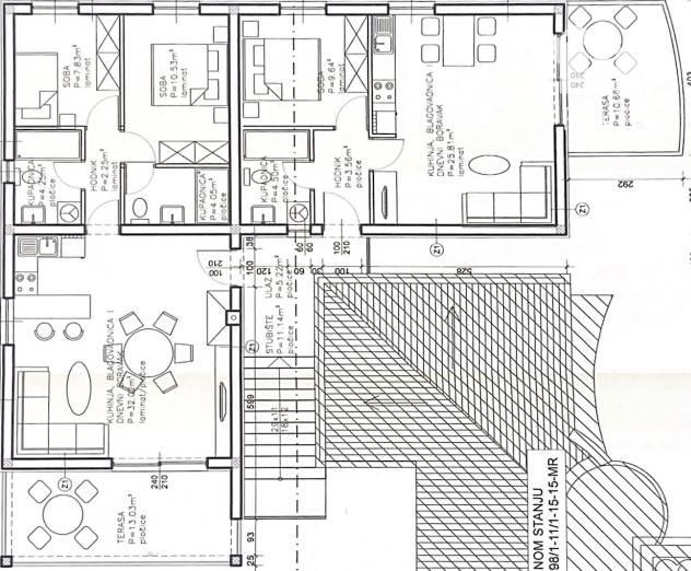 Tento moderný dom s tromi apartmánmi sa nachádza v pokojnom a atraktívnom meste Sukošan, len pár kilometrov od Zadaru a ponúka dokonalú kombináciu pohodlia a investičného potenciálu.