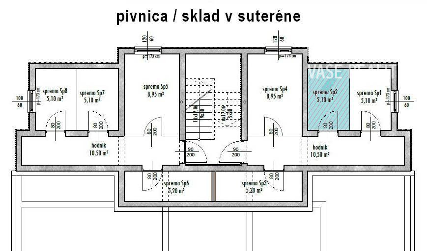 Sklad v suteréne Sp2: 5,10 m² (koeficient 0,50) = 2,55 m²