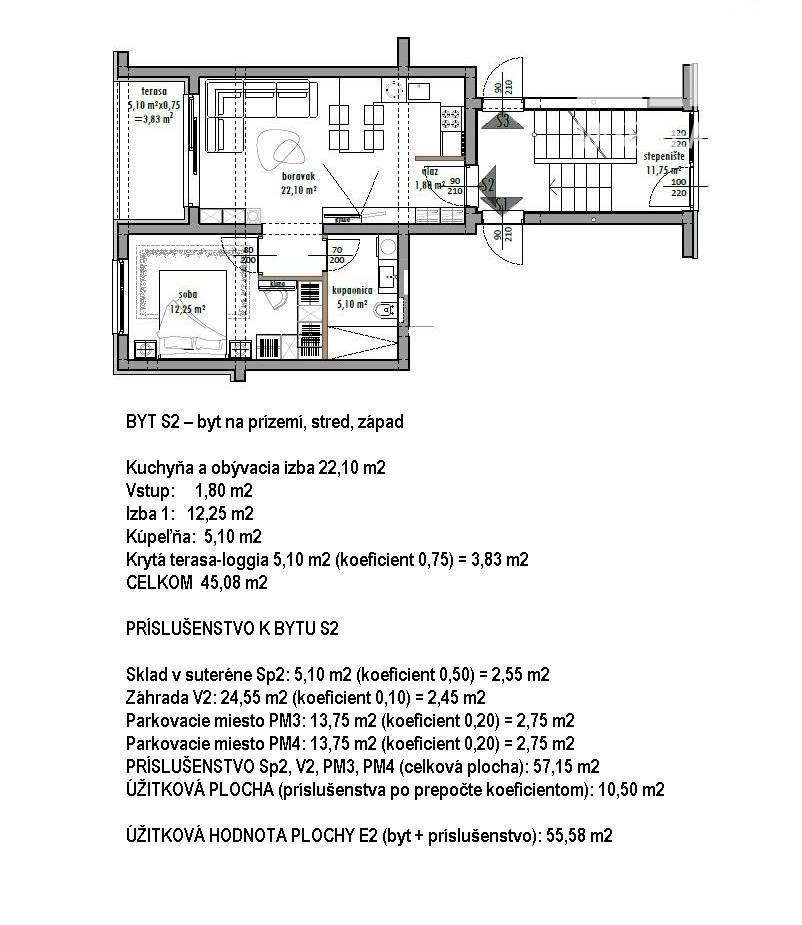 ÚŽITKOVÁ HODNOTA PLOCHY S2 (byt + príslušenstvo): 55,58 m²