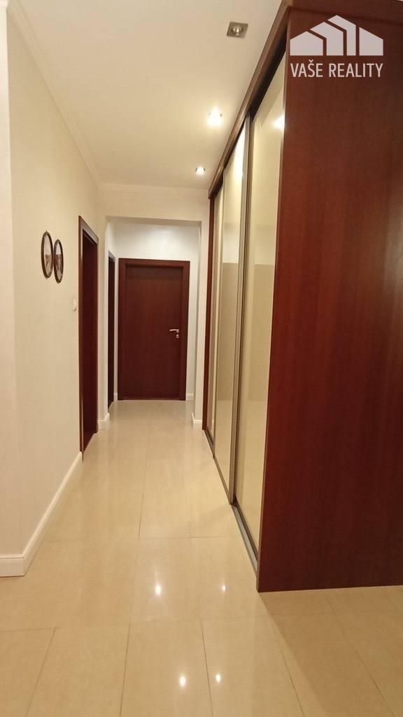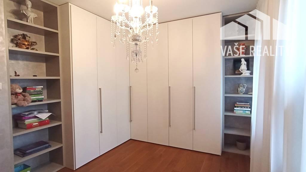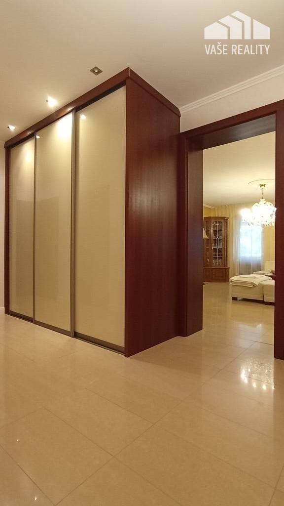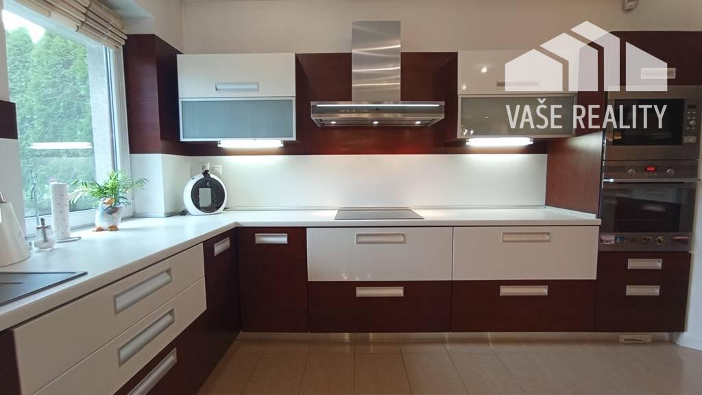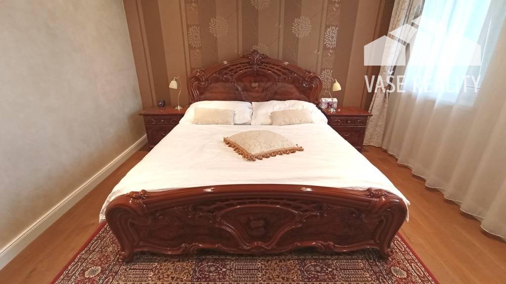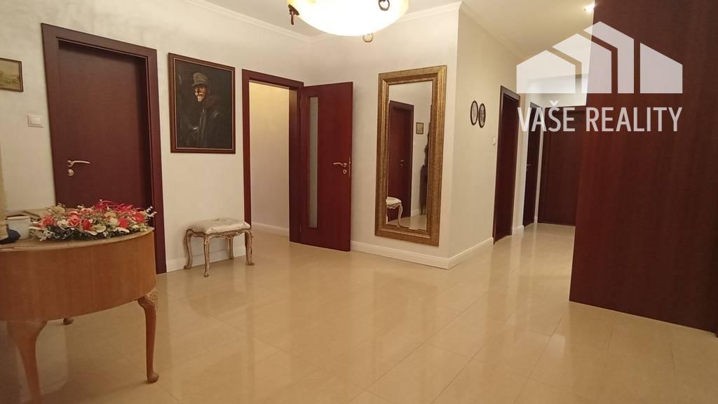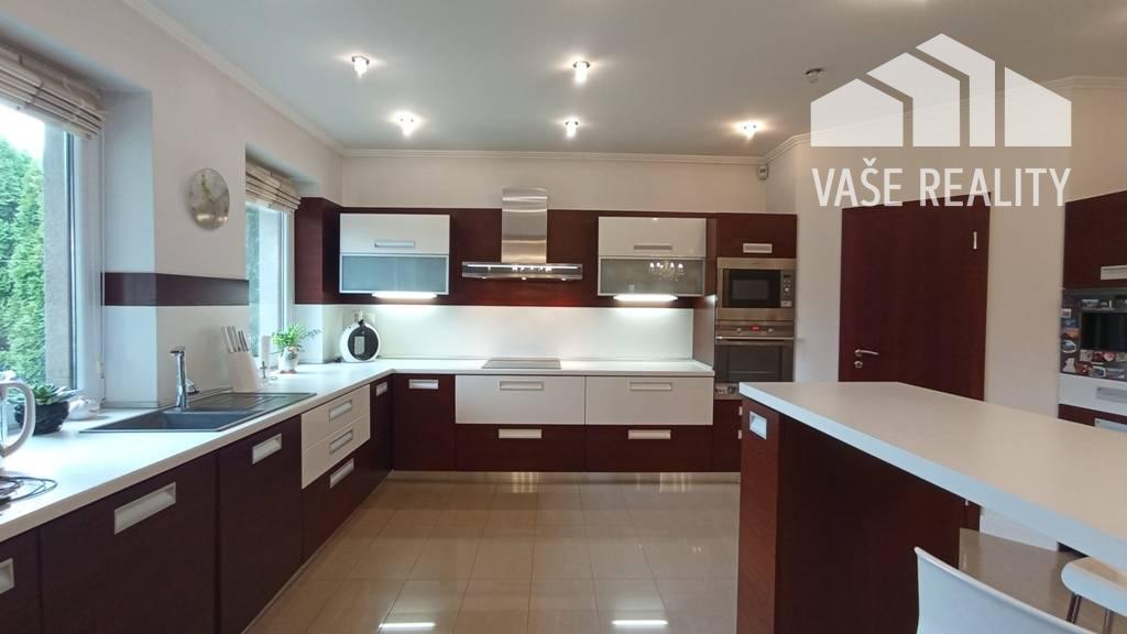 Dispozícia: centrom domu je priestranná obývacia izba s luxusným mramorovým krbom a východom na terasu, prepojená s veľkou modernou kuchyňou s výhľadom do záhrady, 4 samostatné spálne, kúpeľňa, špajza, technická miestnosť / práčovňa, samostatná toaleta, vstupná chodba a veľká chodba.