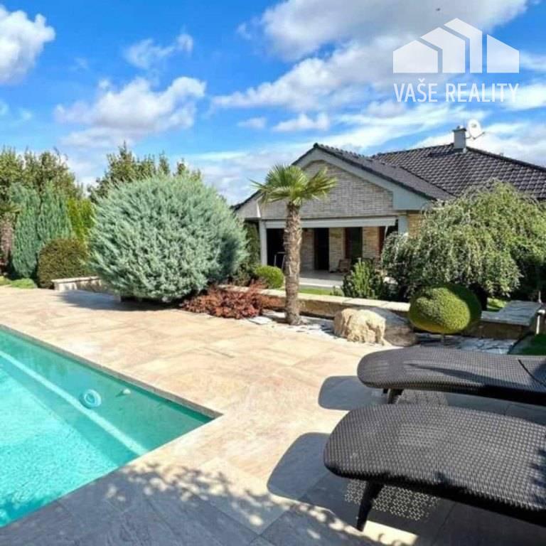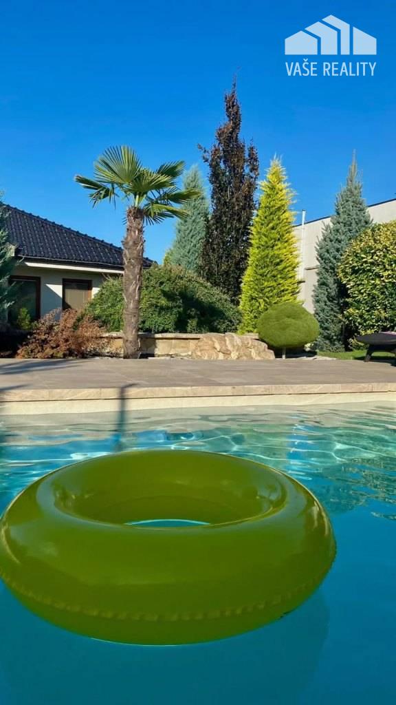 Ponúkame Vám na predaj exkluzívny 5 izbový rodinný dom vo vynikajúcej lokalite Nitra Prameň. Tento úžasný rodinný dom sa nachádza na 8 árovom pozemku s luxusným keramickým bazénom so slanou vodou a stredomorskou atmosférou. Vďaka záhrade plnej kvetov, drevín a paliem sa tu budete v letných mesiacoch cítiť ako na dovolenke.