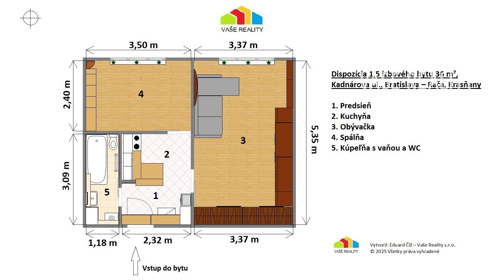 © Text, fotografie a pôdorys sú autorským dielom a majetkom realitnej kancelárie Vaše Reality s.r.o