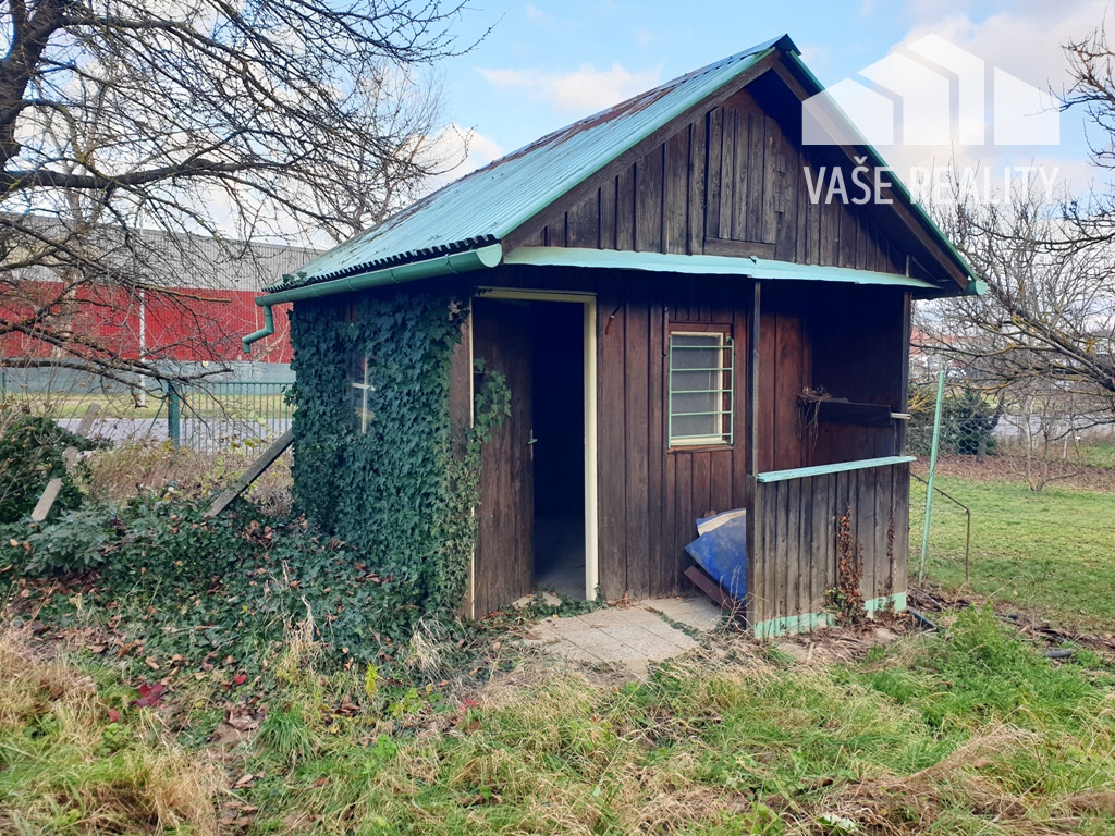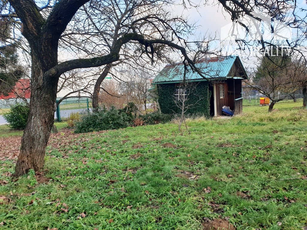 Na pozemku sa nachádza drevený záhradný domček a viacero ovocných stromov.