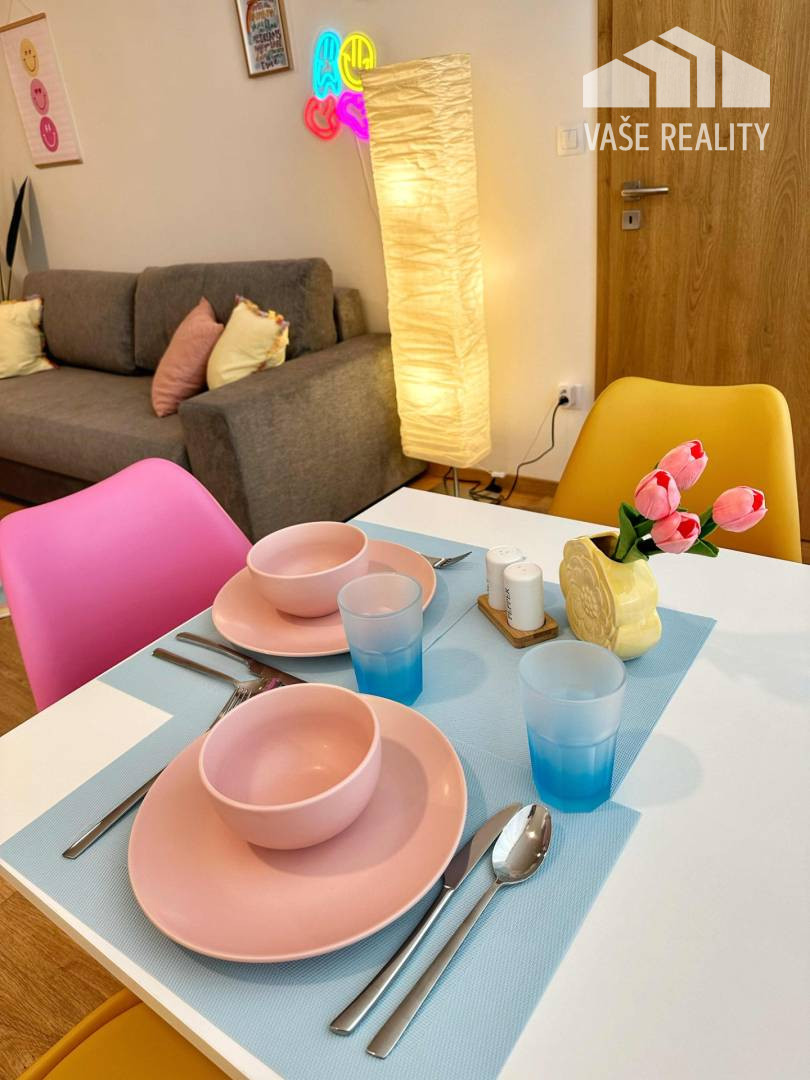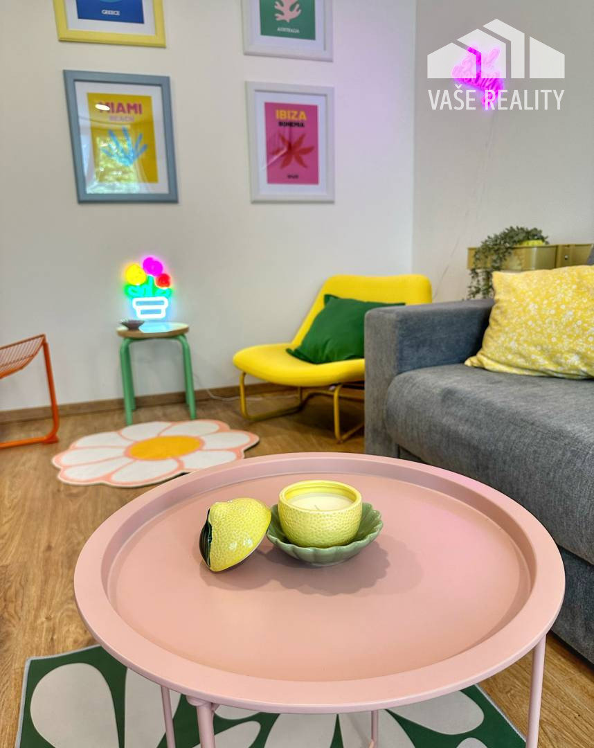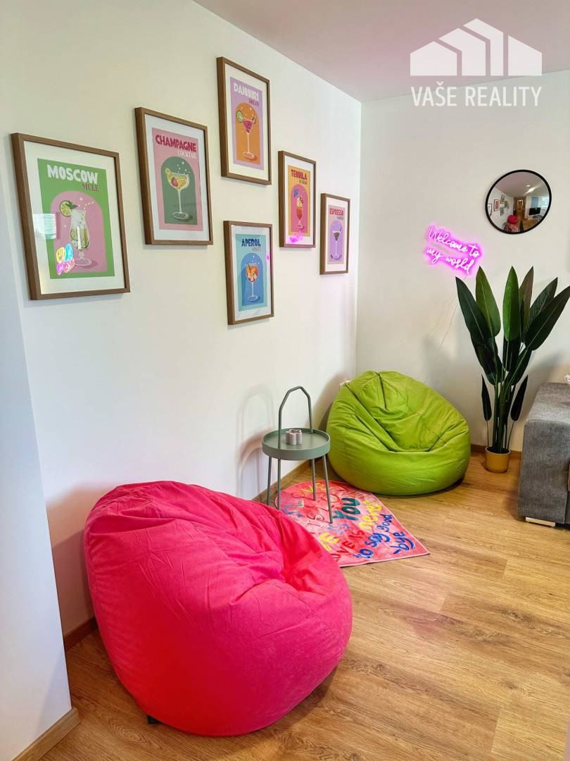 Byt ponúkame zariadený kde k dispozícii je nová kuchynská linka na mieru , zo spotrebičov je v linke chladnička s mrazničkou , sklo keramická varná doska, granitový dres s batériou , kávovarom . Spálňa zariadená rolldor systém , manželská posteľ, byt sa predáva so zariadením. Obývacia izba prepojená spolu s kuchyňou. Celý byt je zariadený dizajnérkou, ktorá vytvorila hravé bývanie pre mladú rodinu, môže to byť prvý štartovný byt pre mladého študenta. Prípadne je byt vhodný ako investičná príležitosť na krátkodobí prenájom, v tejto dobe je zabehnutý a úplne pripravený na prenájom cez portál Booking a Airbnb.