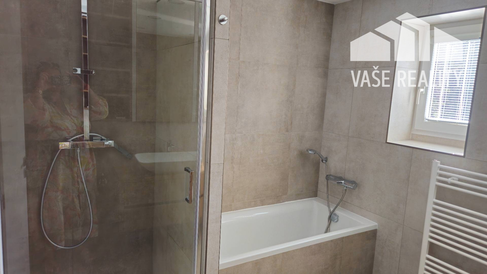 Krásne bytové jadro, W.C. so systémom Geberit , vaňou s termostatickou batériou značky Grohe, a tak isto v sprche termostatická batéria Grohe, okná v kúpeľni privádzajú prirodzené svetlo a vetranie.