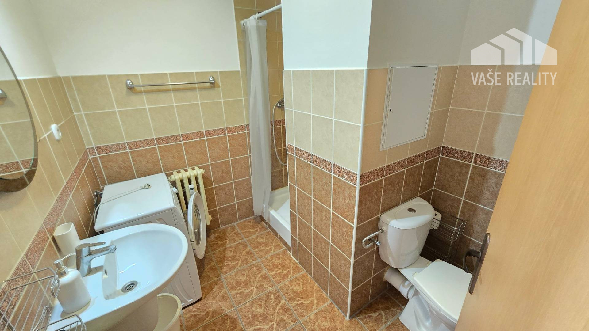 Kúpeľňa je vybavená sprchovacím kútom a je navrhnutá s dôrazom na funkčnosť a estetiku. K bytu prislúcha aj pivnica s rozlohou 3 m2, ktorá poskytuje ďalší úložný priestor. Vykurovanie je spoločné, čo zaručuje efektívne a úsporné riešenie.