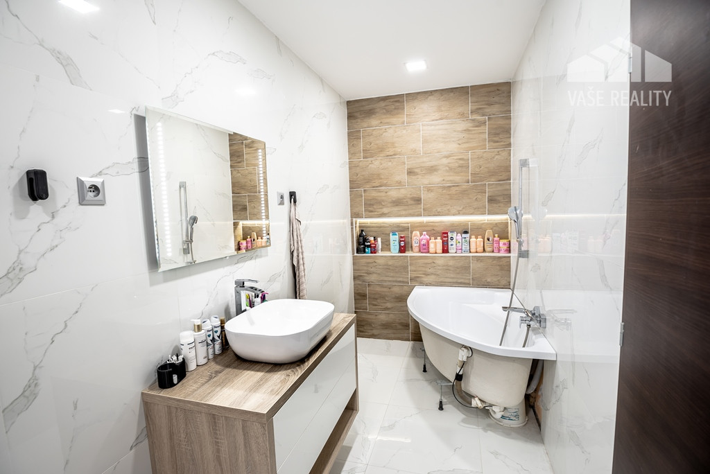 • Modernú kúpeľňu s vaňou a kvalitnými obkladmi