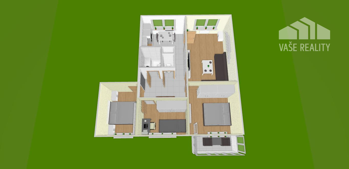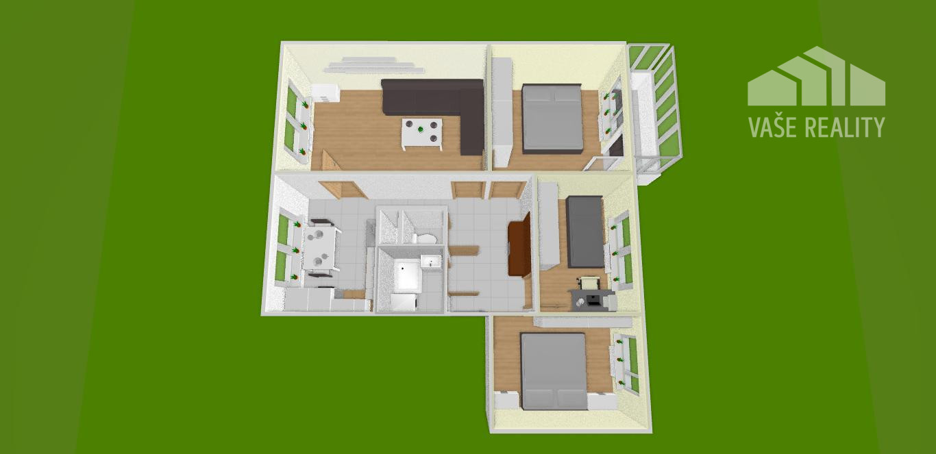 Realitná kancelária Vaše Reality - Pripravujeme na predaj dispozične výborne riešený rodinný byt so štyrmi nepriechodnými izbami a samostatnou kuchyňou. Benefitom je priestranná kúpeľňa s veľkým sprchovým kútom a zasklená lodžia. Byt pôsobí svetlo, vzdušne a ponúka komfort moderného bývania bez ďalších investícií.