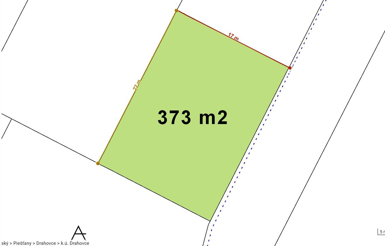 2635 - Pozemok má výmeru 373 m2, pričom šírka je cca 17 m a dĺžka je cca 22 m. Pozemok je rovinatý. V cene je už zahrnutá betónová prístupová cesta s chodníkom a tiež IS : elektrina, voda, kanalizácia, ktoré sú privedené na každý pozemok.