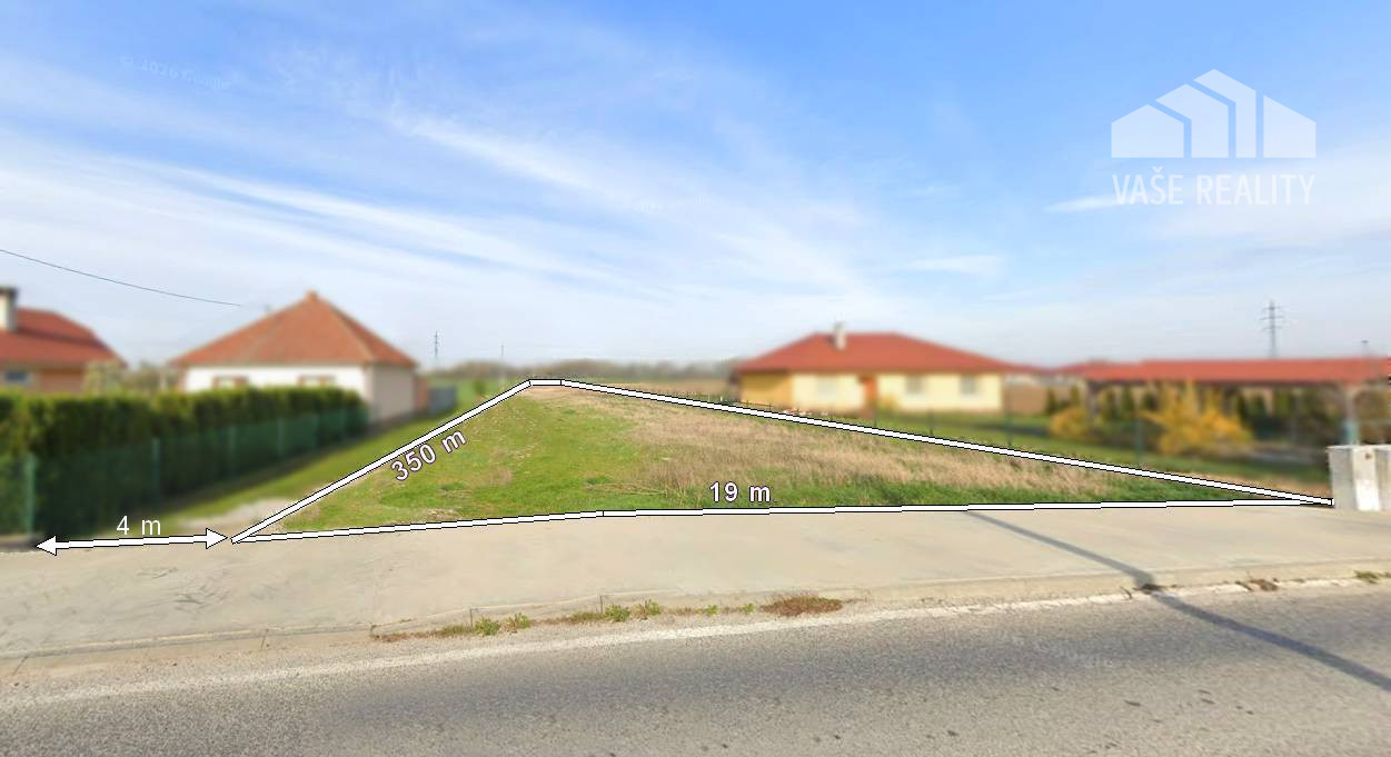 šírka pozemku cca 19 m, dĺžka cca 350 m