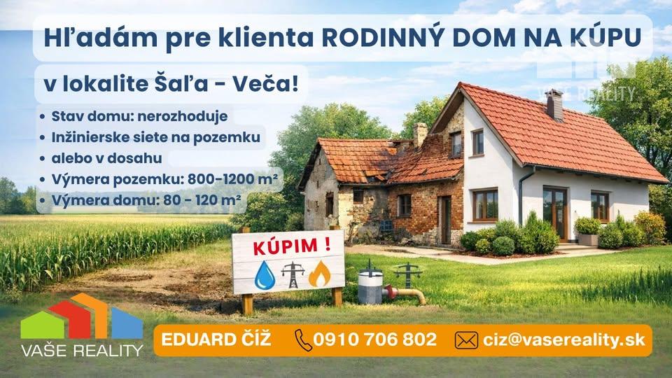 Hľadáme pre konkrétneho klienta rodinný dom v lokalite Šaľa – Veča. Na stave domu nezáleží.