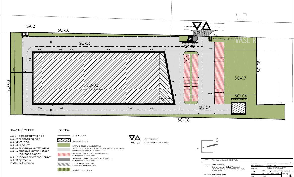 Na pozemku je realizovaná výstavba expedično-administratívneho objektu, ktorý je navrhnutý ako jednopodlažná hala pozostávajúca z: