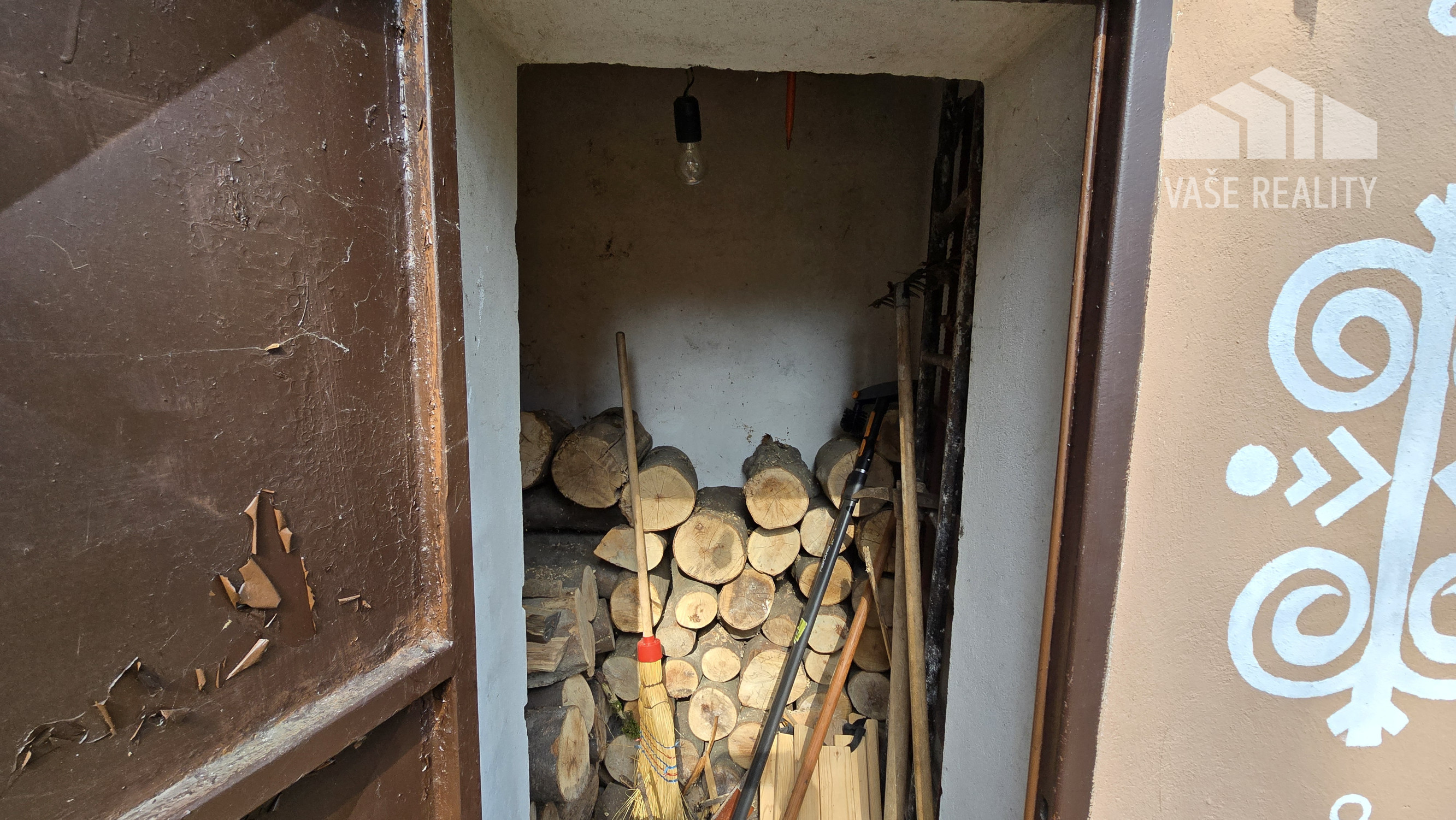 kôlňa na drevo, vonkajšie posedenie vedľa chaty, spevnené plochy a prístup