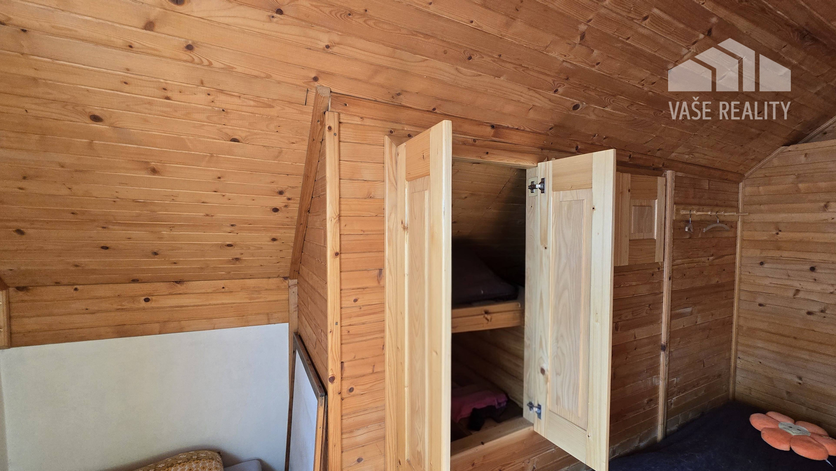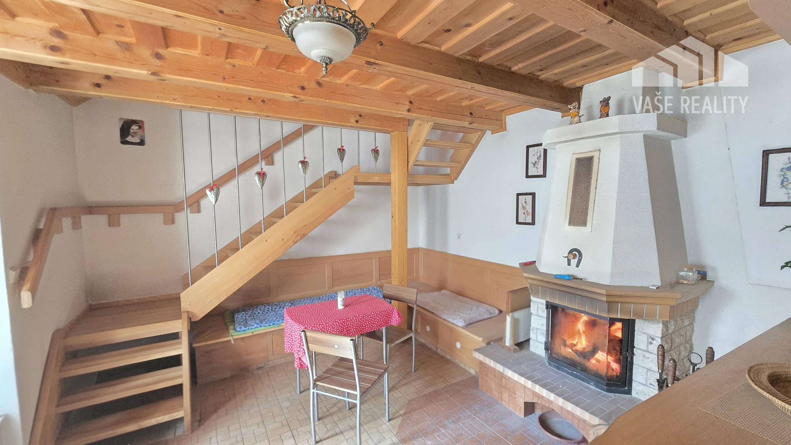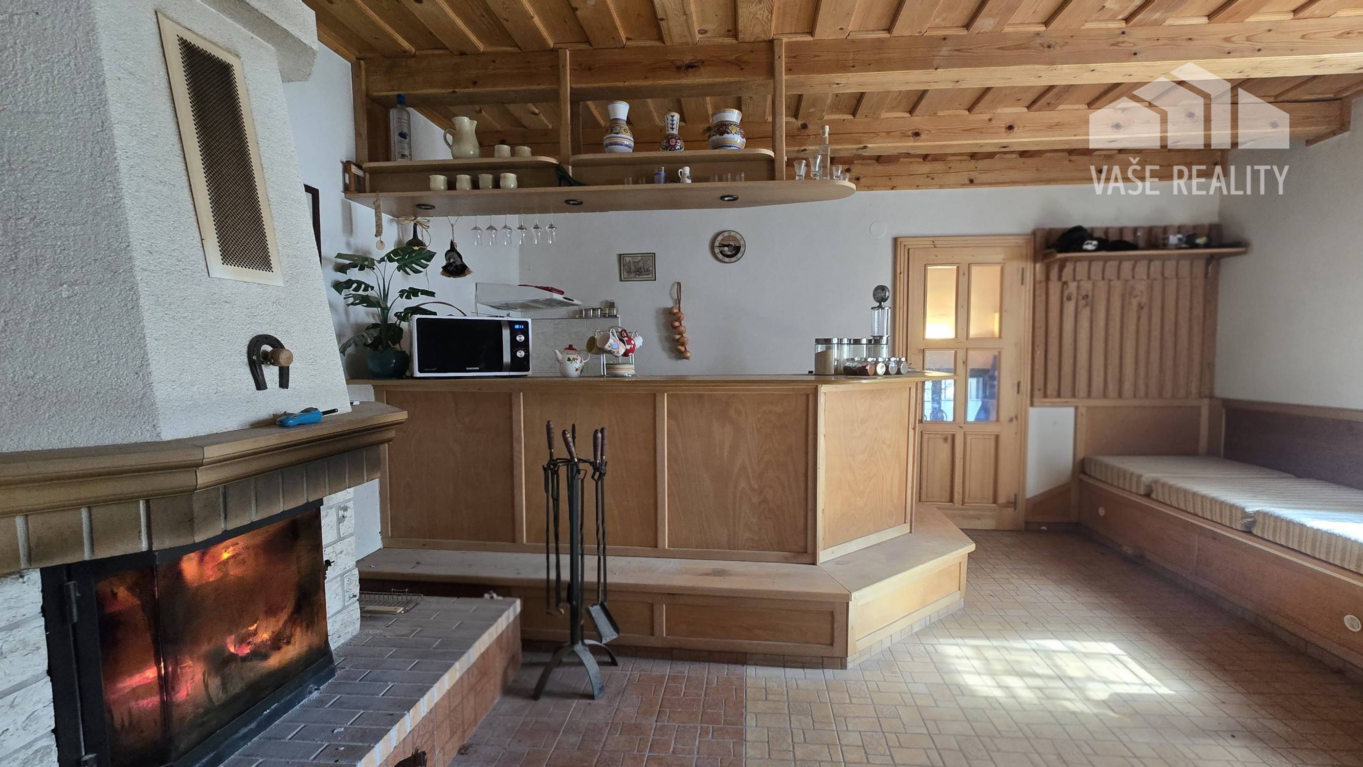 Chata ponúka prakticky riešený priestor s dennou časťou, kuchyňou, kúpeľňou a nočnou časťou na poschodí.