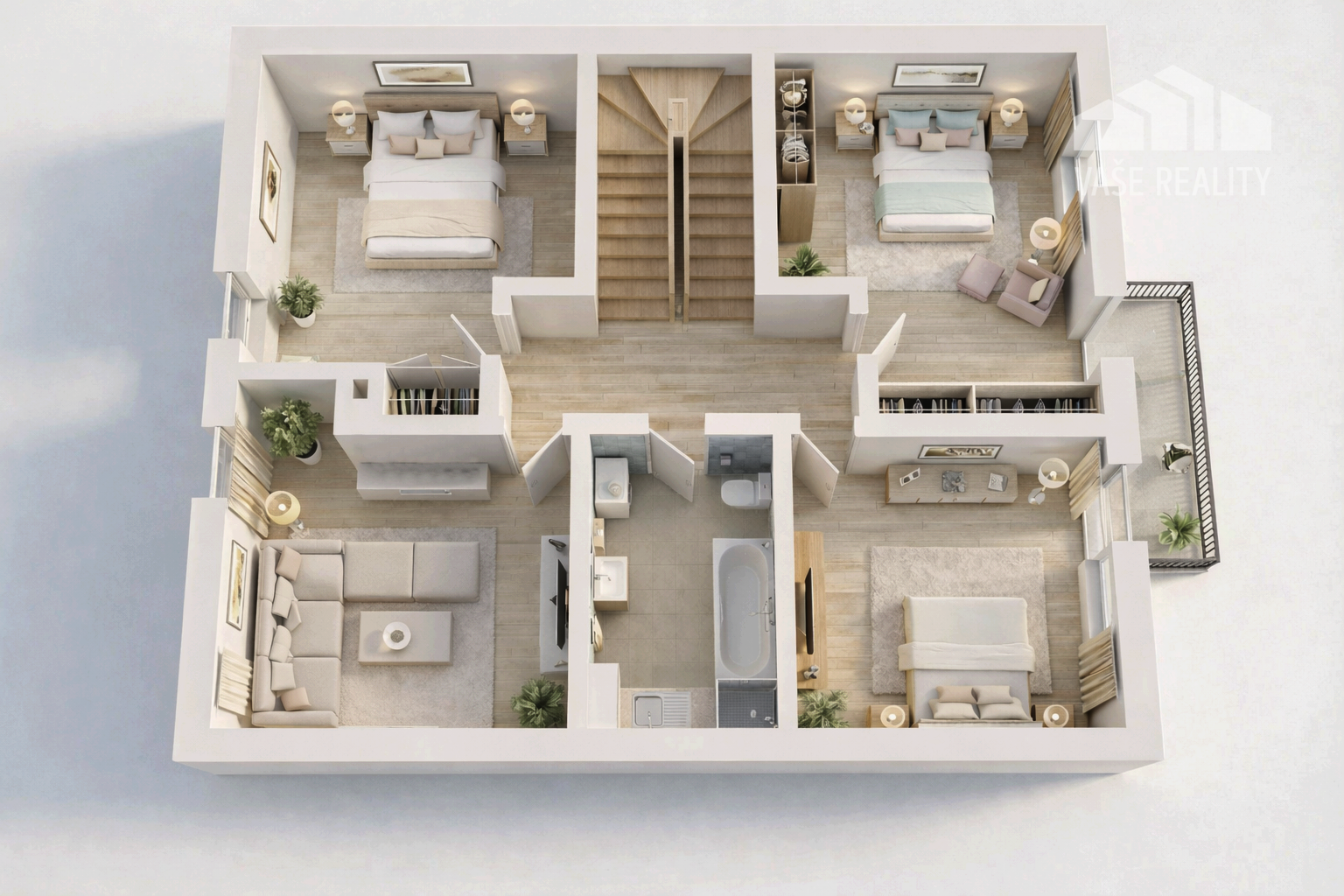 Dom ponúka komfortný priestor pre rodinné bývanie s možnosťou individuálneho dokončenia interiéru podľa vlastných predstáv, bez kompromisov developerského štandardu.