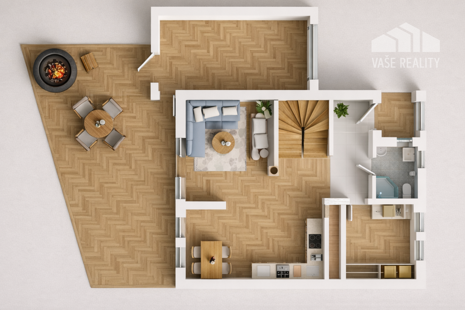 Vďaka dvom podlažiam je vhodný aj na viacgeneračné bývanie alebo kombináciu bývania a prenájmu.