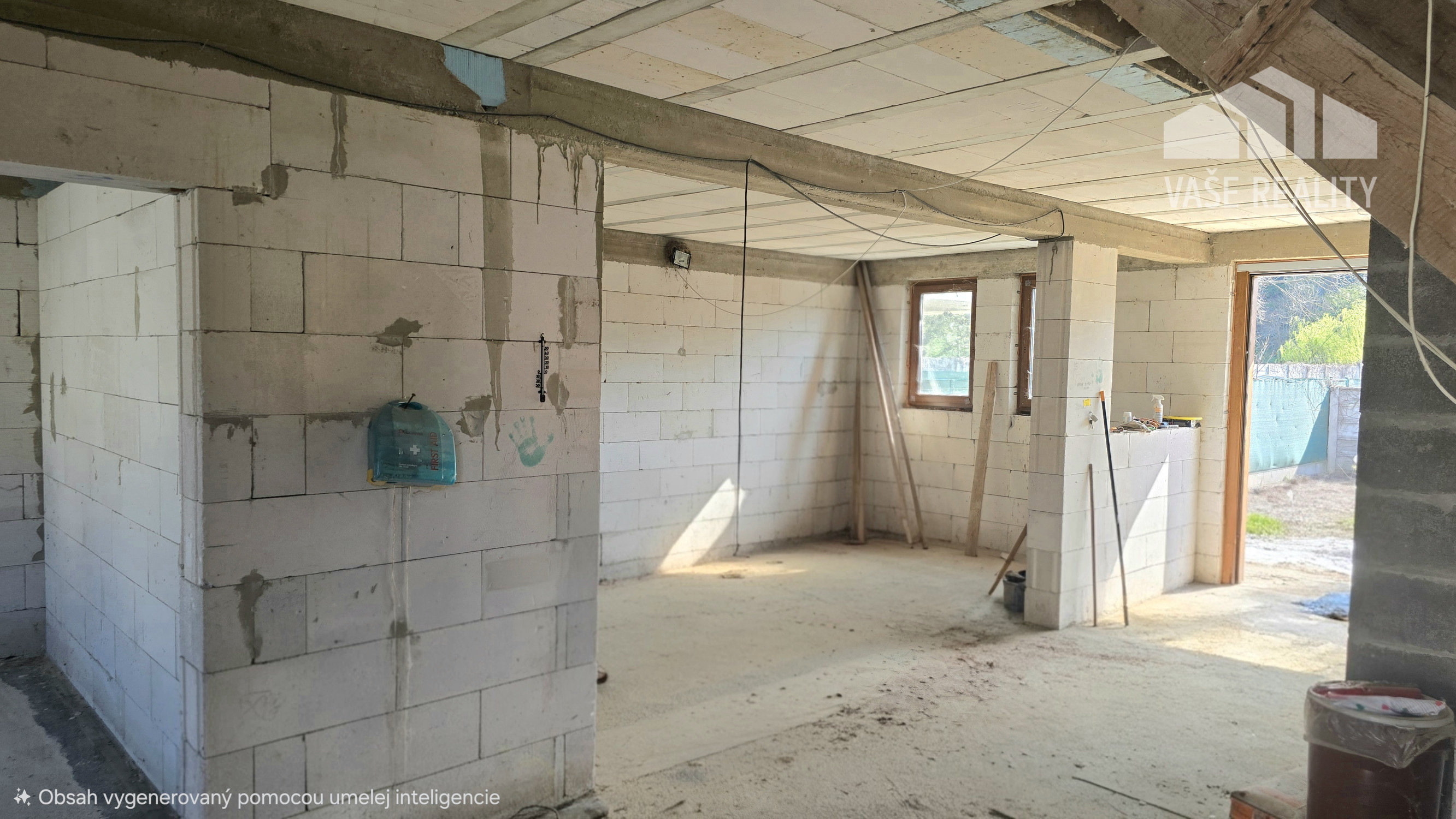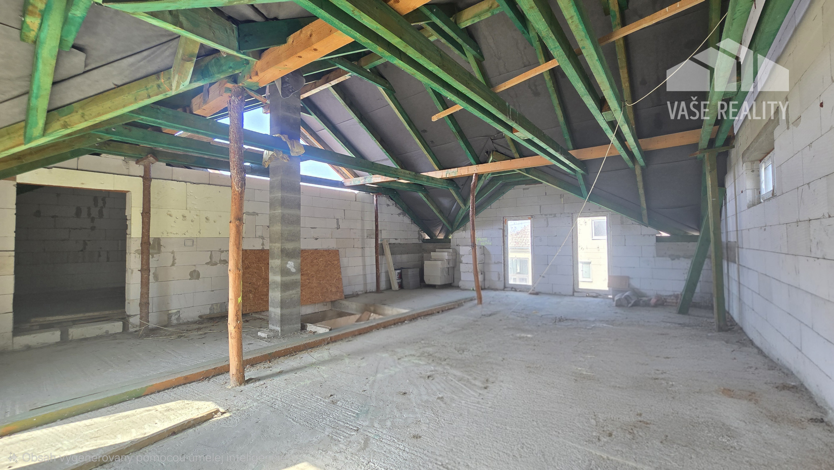 - stav: uzavretá hrubá stavba (strecha, osadené plastové okná ALUPLAST 3-sklo
