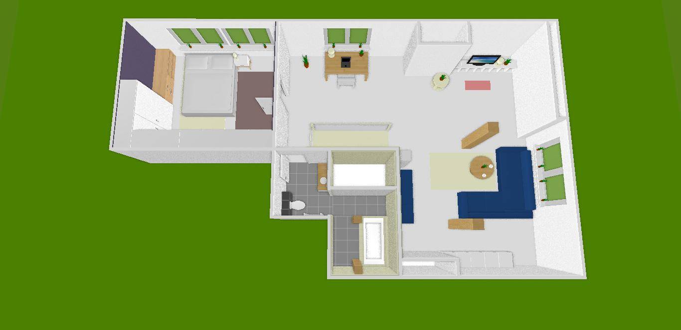 • Prízemie je dispozične rozdelené na predsieň, kúpeľňu, kuchyňu s jedálňou a schody, ktoré spájajú obidve podlažia.
